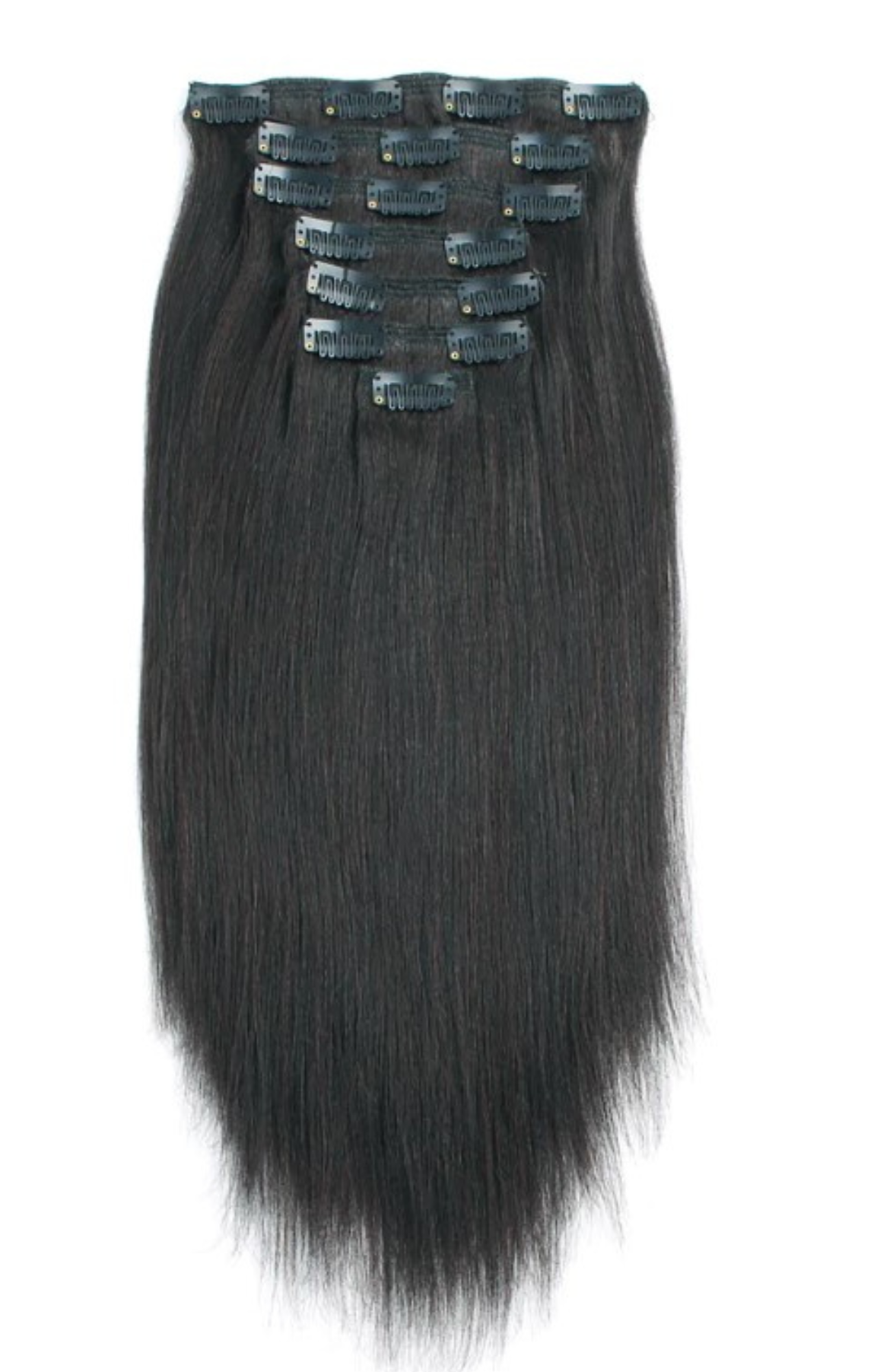 Our TEXTURED STRAIGHT clip-in extensions are perfect for blending with relaxed-permed hair. Whether you plan to leave your natural hair out or want it tucked away, all you need is one set. Simply select your desired length and get ready to be transformed!