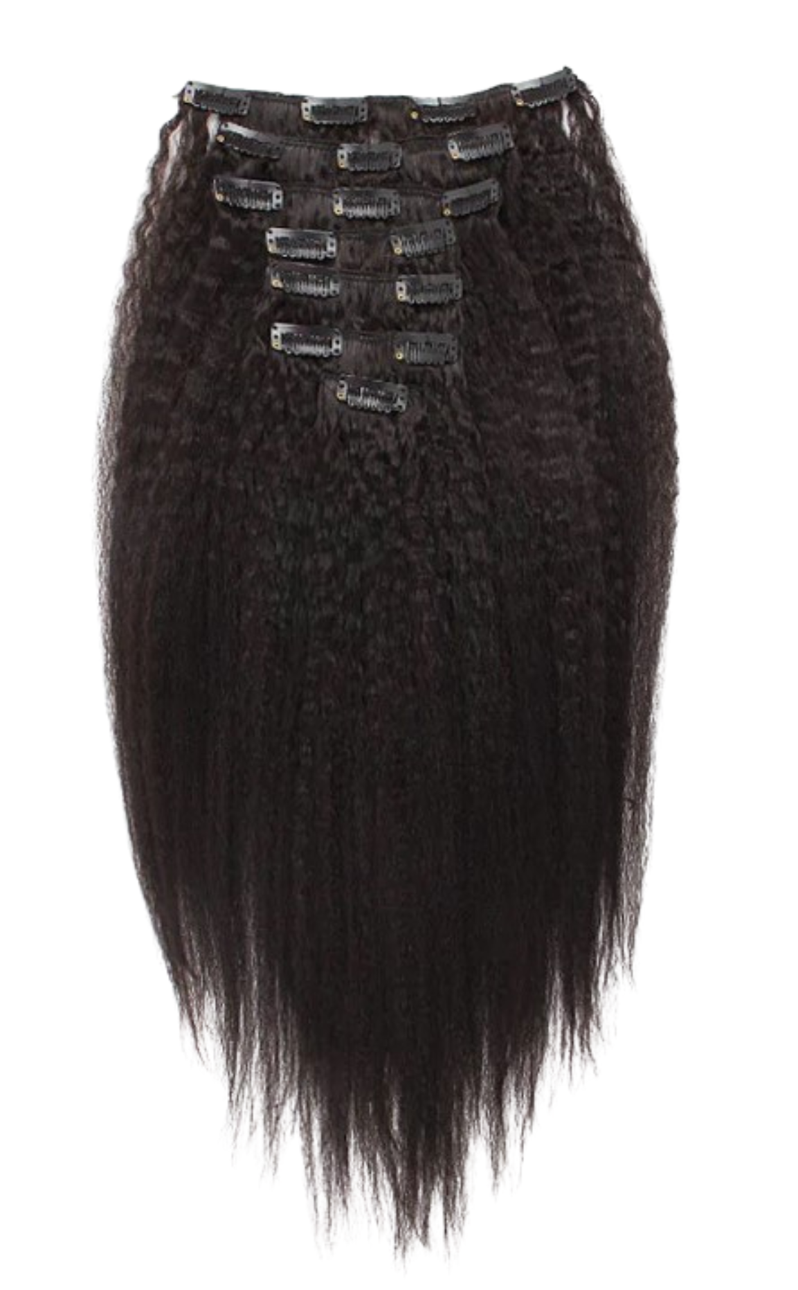 Our VERY TEXTURED STRAIGHT clip-in extensions are perfect for blending with 4c type hair when blown out. Whether you plan to leave your natural hair out or want it tucked away, all you need is one set. Simply select your desired length and get ready to be transformed!