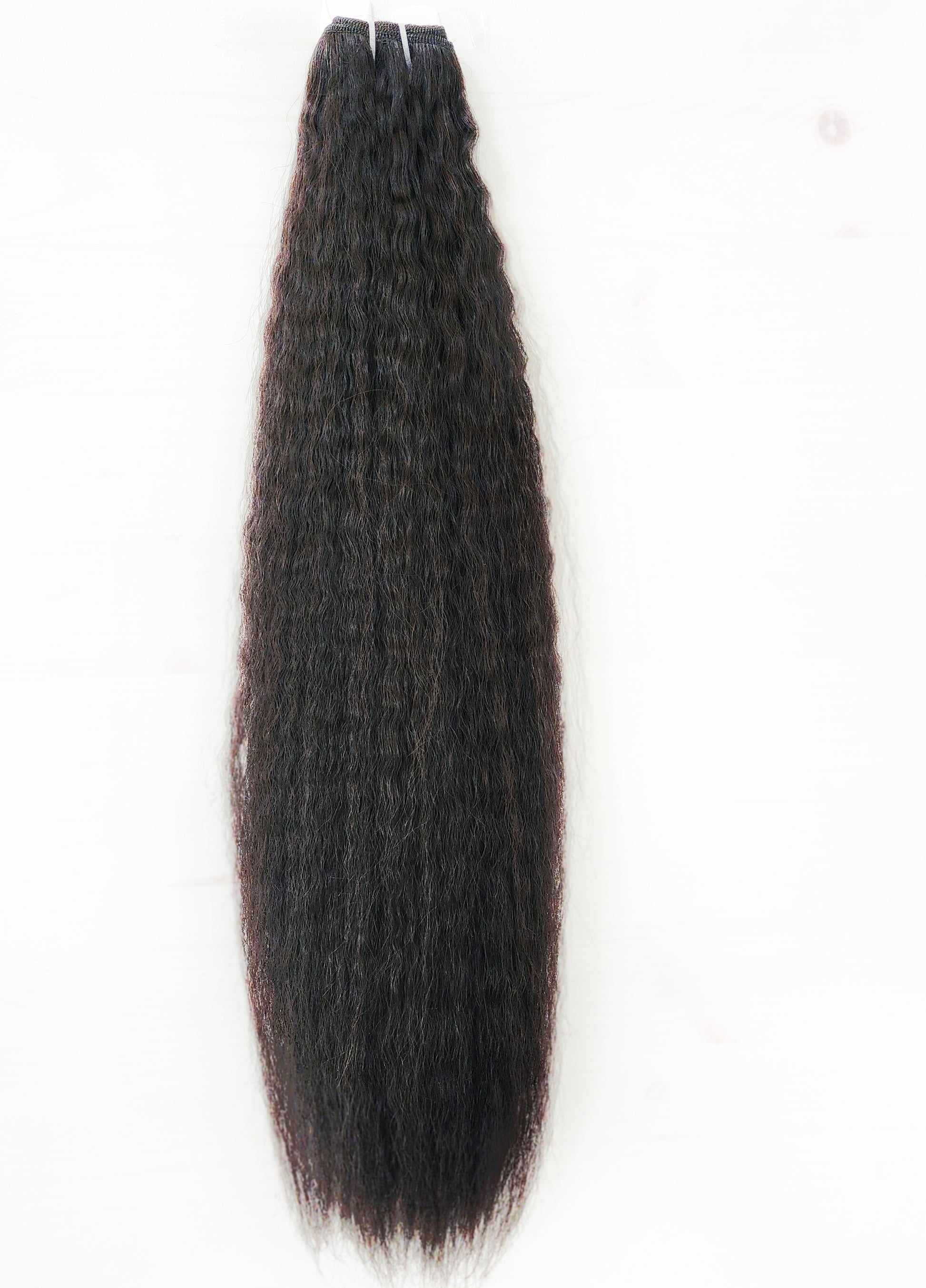 This texture has undergone a 3-day steam process leaving you with a slight - medium coarse texture that blends with most natural hair types.